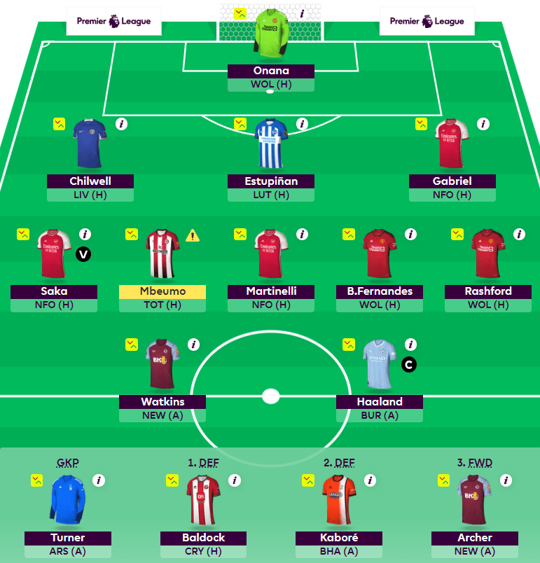 With Man United having Wolves (h), Spurs (a), Forest (h) and Arsenal playing Forest (h), Palace (a), Fulham (h) in the first three Gameweeks - triple ups on both teams looks good.