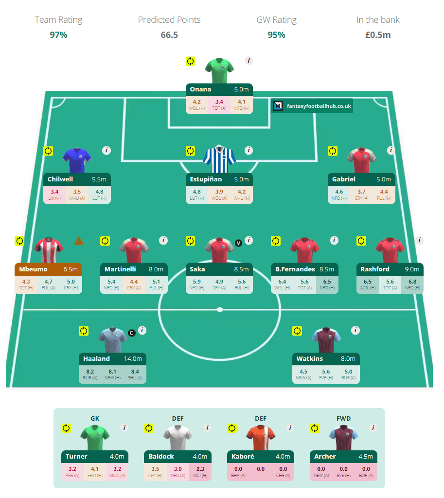 I suspect André Onana (£5.0m) will make my final team but Jordan Pickford (£4.5m) rotates really well with Turner so I may save some money there too.